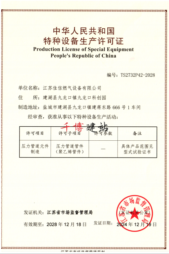 企業資質 發布時間:2025-05-29 打印當前頁 將此頁放入收藏夾 發郵件給我們:postmaster@jsjxgas.com 基本資質 壓力管道元件生產許可證 附件下載:暫無下載地址查看該欄目其他文章: 基本資質